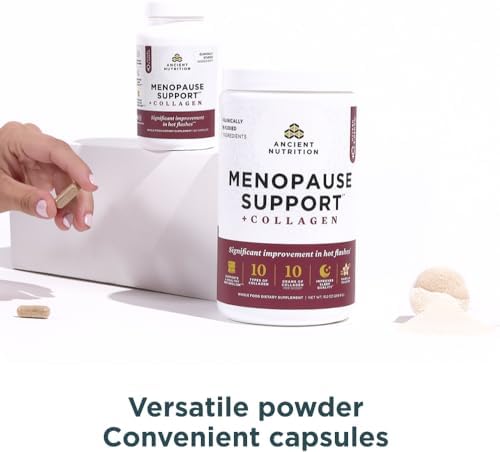 Ancient Nutrition Menopause Support + Collagen Supplement, Hydrolyzed Collagen Peptides, Key Clinically Validated Superfoods, Significant Improvement in Hot Flashes and Sleep Quality, 60 Capsules