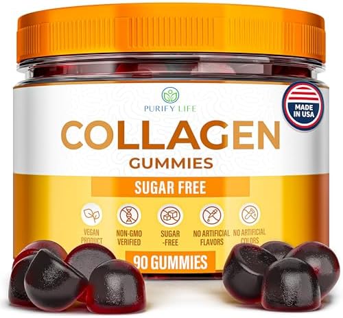 Sugar-Free Marine Collagen Gummies (90 Collagen Chews) Potent 500mg Collagen Gummy for Hair Growth, Healthier Skin & Nails, Pore Reducer & Elasticity Hydrolyzed, Gluten Free, Non-GMO, Orange Flavor