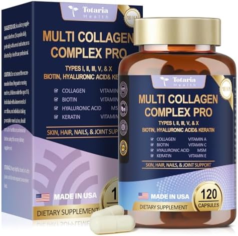 18-in-1 Collagen Pro with Hyaluronic Aicd, Keratin, Biotin, VIT A C & E for Skin, Hair, Nails, Joint & Beauty – Multi Collagen Peptides Capsules with Type I II III V & X for Women & Men – 120 Caps