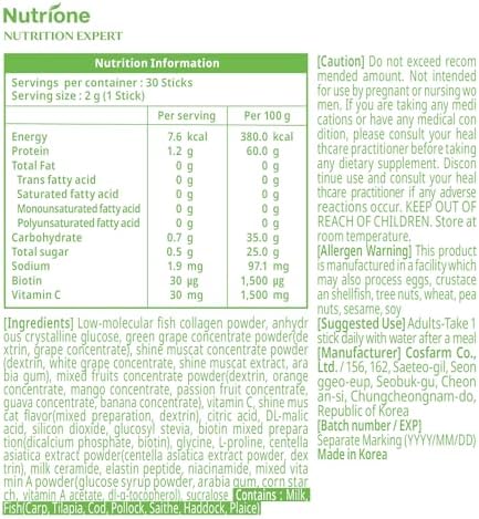 Beneficial Ingredients: Each stick contains 1,200 mg of fish collagen with Biotin, Vitamin C, Elastin Pepetide, Milkceramide for the best possible results.