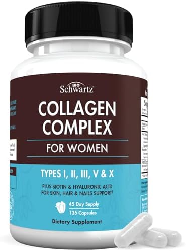 BioSchwartz Hydrolyzed Collagen Peptide Capsules – Multi Collagen Supplements for Women Types I, II, III, V, X with Vitamin C, Biotin, Keratin and Hyaluronic Acid for Skin, Hair & Nails – 135ct