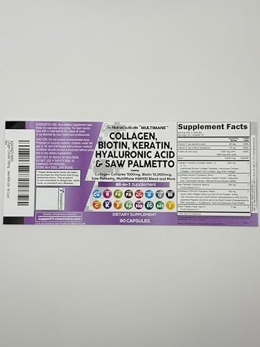 MultiMane Keratin and HSN100 Blends – With 6 full hair growth vitamins for women and collagen for hair growth included above, our formula also contains hair and nails vitamins for women such as hyaluronic acid capsules, pumpkin seed, MSM, PABA, glutathione, apple cider vinegar, a dht blocker for women hair growth and dht blocker for men! These 16-in-1 skin vitamins for women are packed with collagen vitamins, marine collagen capsules, biotin capsules, hyaluronic acid pills and collagen complex.
