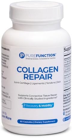 HOW TO TAKE: Take 2 capsules together daily. To optimize absorption, take Collagen Repair with a light meal containing a healthy fat source. Several vitamins and minerals are essential for maintaining healthy joint connective tissue, so try to consume nutrient-dense foods. The founder of PUREFUNCTION prepares his joints for morning exercise by taking Collagen Repair with 15 grams of high quality hydrolyzed collagen and 1 tablespoon of extra virgin olive oil.