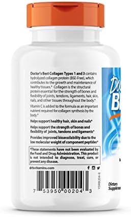 Doctor’s Best Collagen Types 1 & 3 with Peptan, Non-GMO, Gluten Free, Soy Free, Supports Hair, Skin, Nails, Tendons & Bones, 1000 mg, 180 Tablets