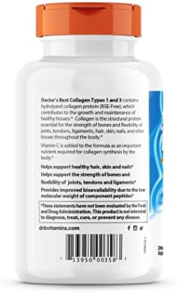 Doctor’s Best Collagen Types 1 & 3 with Peptan, Non-GMO, Gluten Free, Soy Free, Supports Hair, Skin, Nails, Tendons & Bones, 1000 Mg, 540 Tablets