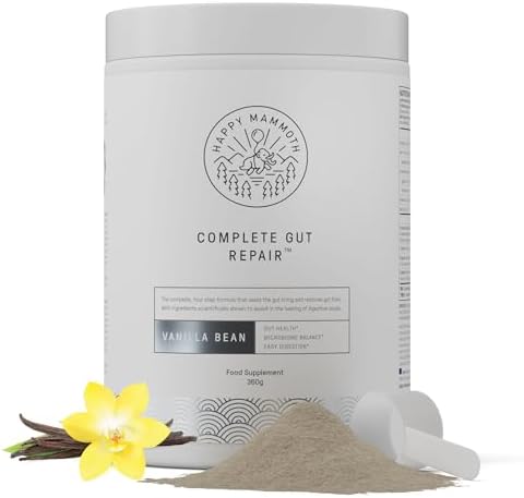Happy Mammoth Complete Gut Repair Probiotic, Prebiotic, Fiber & Collagen Supplement for Gut Health, Digestion, Healthy Gut Microbiome, Reduces Constipation & Bloating 24 Servings, Vanilla Flavor
