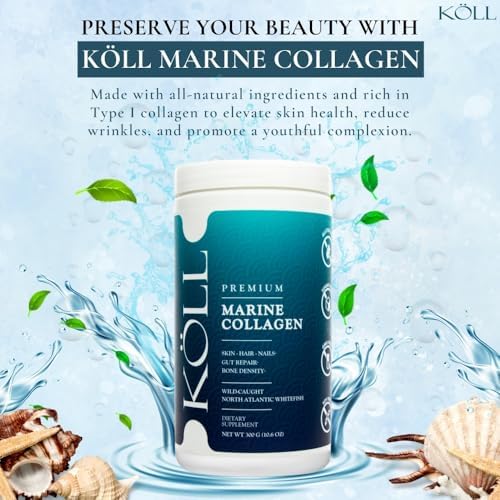 KÖLL Marine Collagen Peptides Powder, Unflavored & Sugar-Free | 10,000mg Hydrolyzed Collagen Supplements | Wild-Caught Sourced, Non-GMO & Zero Preservatives Type 1 Collagen for Bone & Skin Health