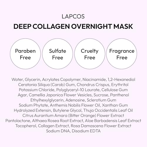 LAPCOS Deep Collagen Glass Skin Overnight Mask – Korean Skin Care Mask w/Rose PDRN, Vegan Collagen & Hydrogel Sheet – Hypoallergenic Firming Collagen Face Mask Sheets (4 ea, 1.23 oz)