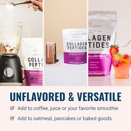 Live Conscious Collagen Peptides Powder – Naturally-Sourced Hydrolyzed Collagen Powder – Hair, Skin, Nail, and Joint Support – Type I & III Grass-Fed Collagen Supplements for Women and Men – 16oz