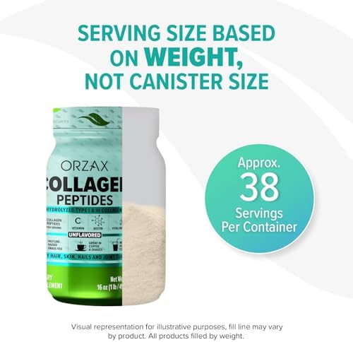 ORZAX Collagen Peptides Powder – 11 g Collagen Type I & III, Biotin & Hyaluronic Acid, 16 oz (Unflavored)