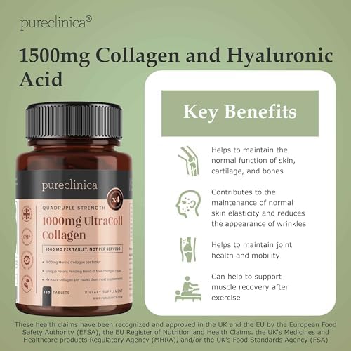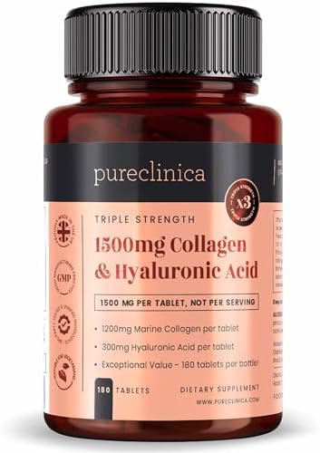 pureclinica Triple Strength 1500mg Collagen and Hyaluronic Acid x 180 Tablets – 6 Months Supply