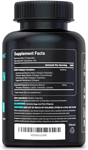 Complete Collagen Supplements: Discover the ultimate collagen solution with our multi collagen complex. Packed with hydrolyzed collagen peptides from bovine, marine, chicken bone broth, & eggshell membrane sources, our pills deliver I, II, III, V, & X collagen.