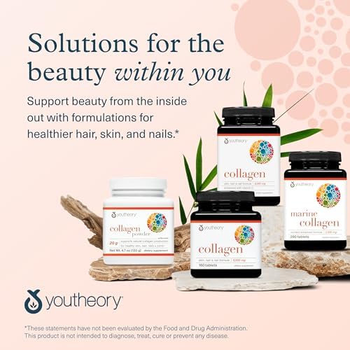 Collagen Protein for Women and Men: Youtheory Advanced Collagen provides 6,000 mg of hydrolyzed collagen peptides with vitamin C for hair, skin, and nails*