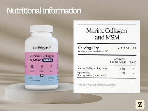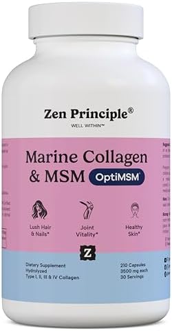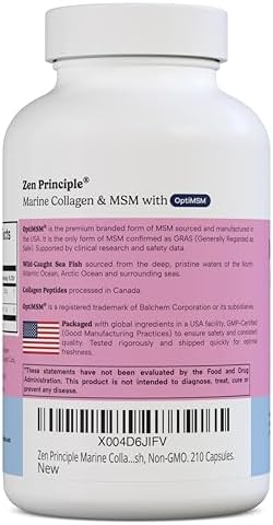 Zen Principle Marine Collagen Peptides Powder with OptiMSM® Supplement. Clinically Tested for Skin Support. Wild-Caught Fish, Non-GMO. 210 Capsules.